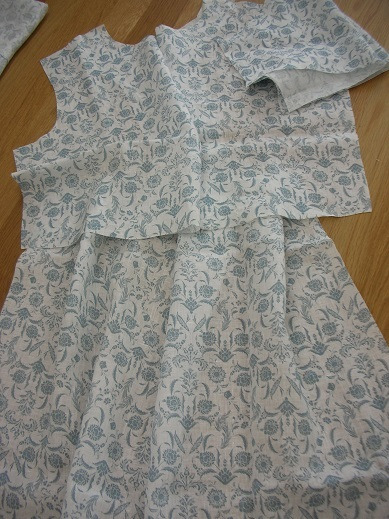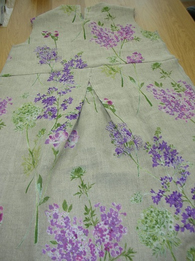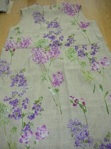 リネンのプリント生地でワンピースをお作りです。