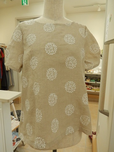 リネンの刺繍生地でブラウスをお作りのお客様です。