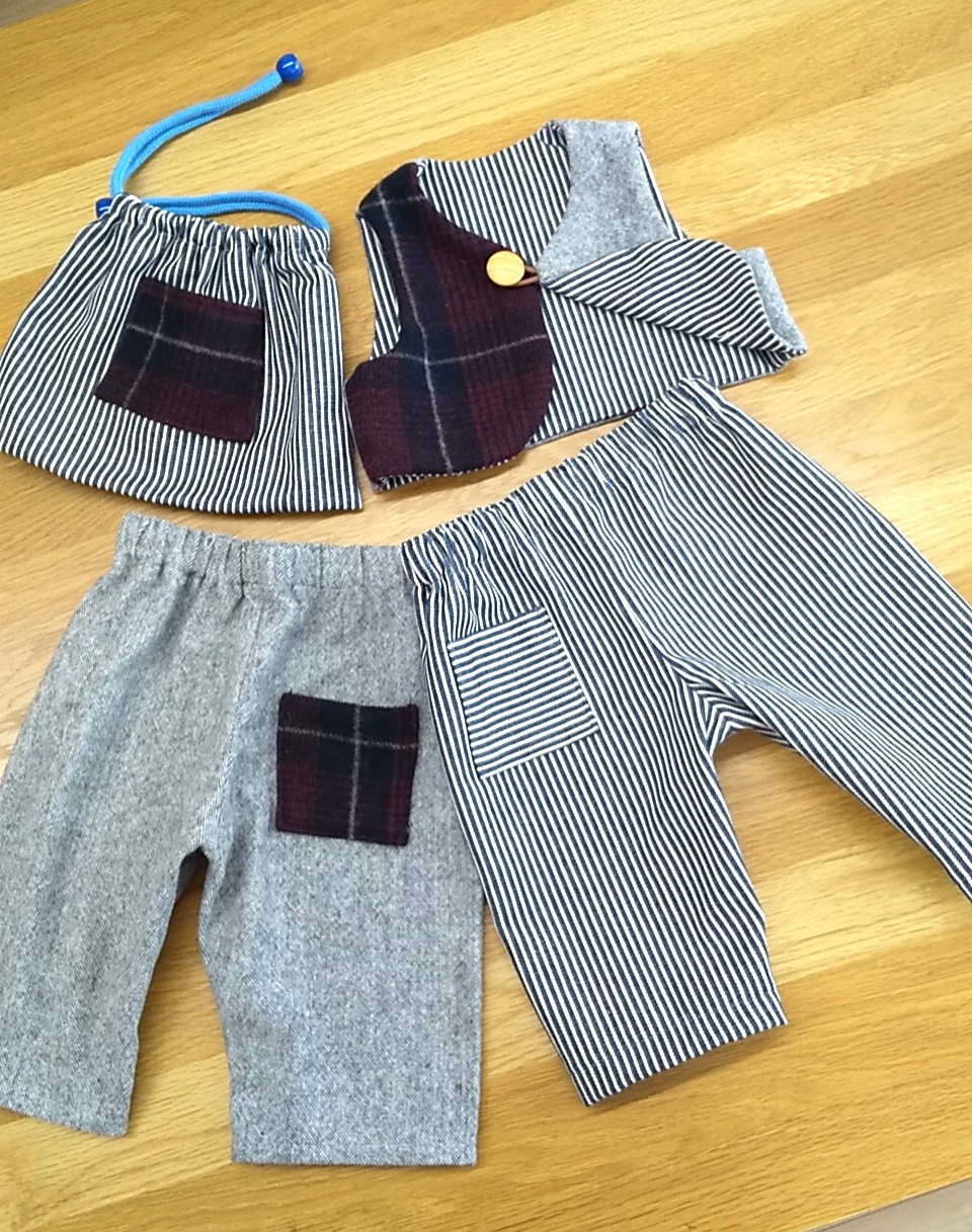 80センチの男児服 洋裁教室 X Facebook はてブ Pocket LINE コピー 2020.02.09 お孫さまの洋服をお作りのお客さまカジュアルにもおよばれにも大活躍のリバーシブルベストとそれぞれのパンツさらに残り布で袋もお作りです