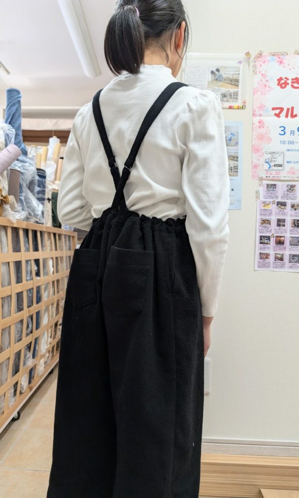 サロペットパンツできたよ 洋裁教室かわいい! X Facebook はてブ Pocket LINE コピー 2025.03.20 小学5年生ながら、fil教室歴4年のお客様。スエード調コットンでサロペットパンツをお作りです。何本目かのパンツ。もちろんポケットもありますよ。できました。