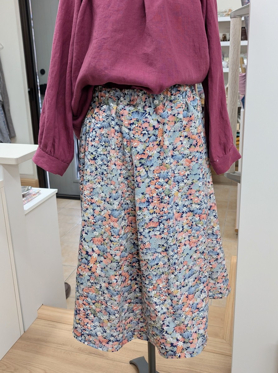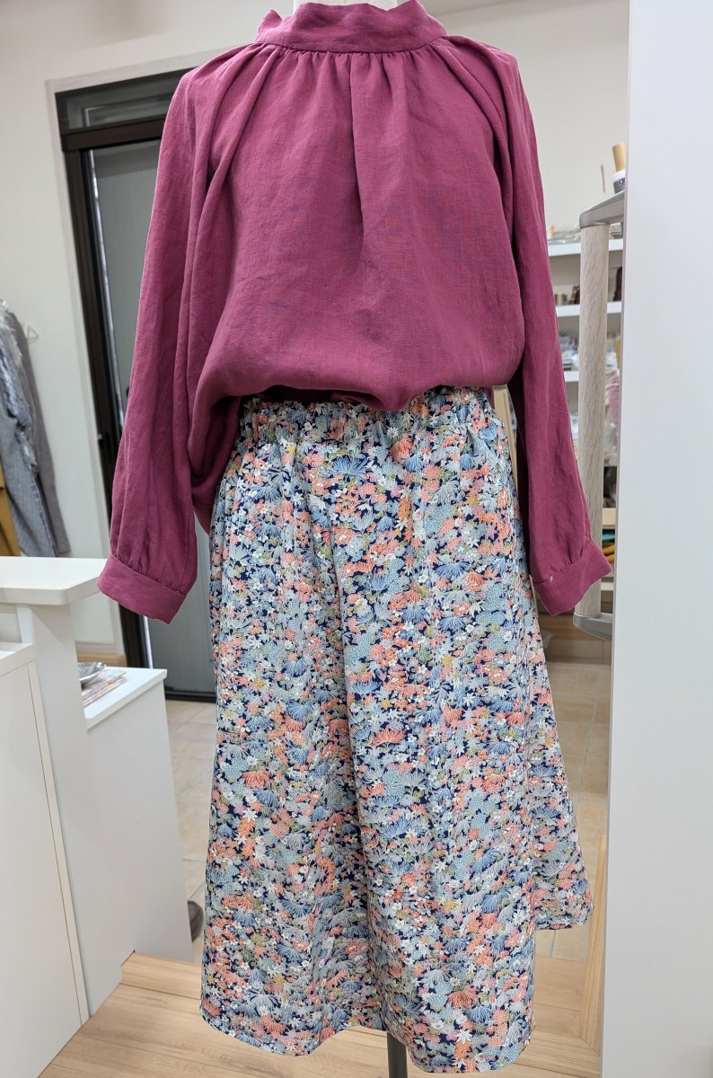 小紋から 洋裁教室可愛いスカートに X Facebook はてブ Pocket LINE コピー 2025.03.25 お手持ちの着物を6枚はぎのスカートにされました。裏地は着物の胴裏をお使いです。お客様のお母様がお選びの柄が、かわいいスカートになりました。