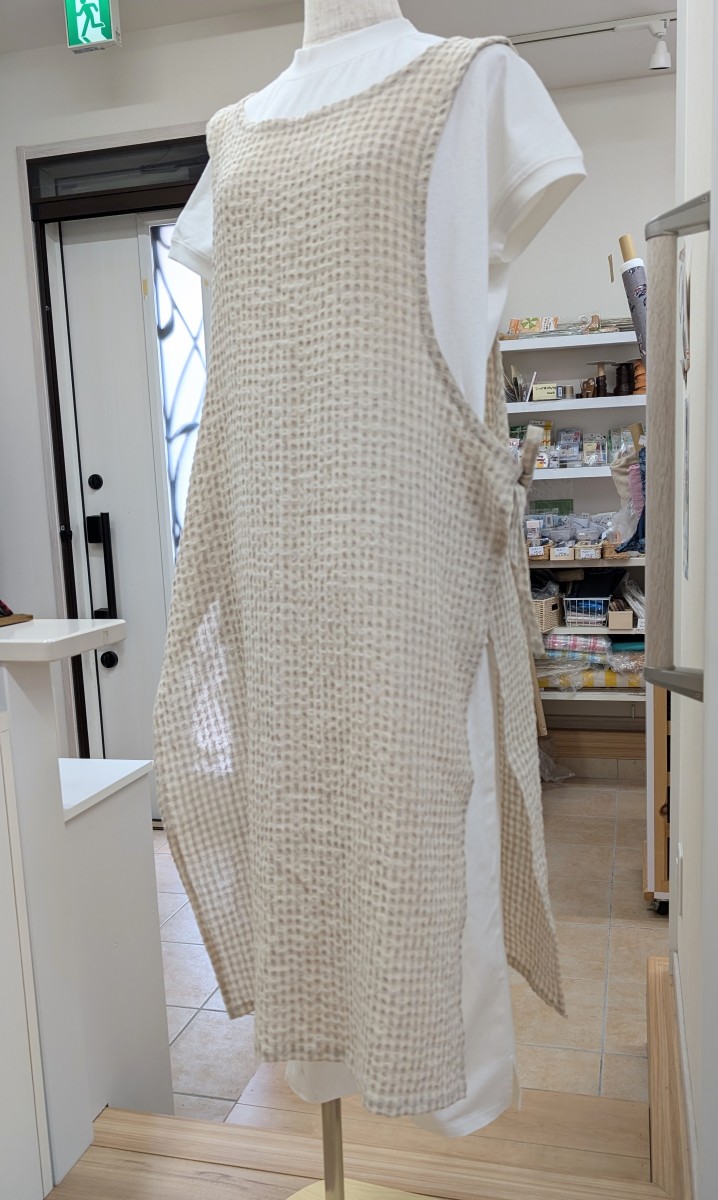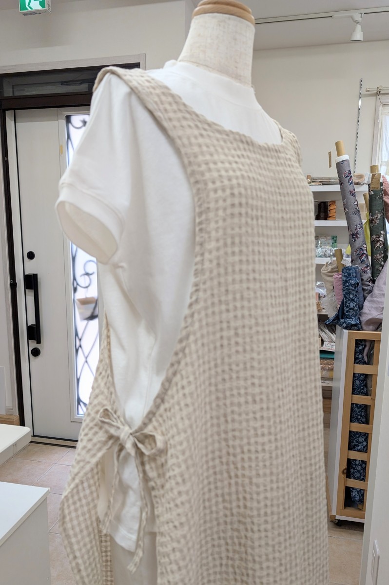 大人かわいいエプロン 洋裁教室ワクワク!エプロン X Facebook はてブ Pocket LINE コピー 2025.04.08 「いつかは、リネンエプロン」と、お客様。迷われて、リネンコットンのポコポコ生地にされました。洗濯後もノーアイロンのストレスフリー生地。大人かわいいスタイルのエプロンになりました。