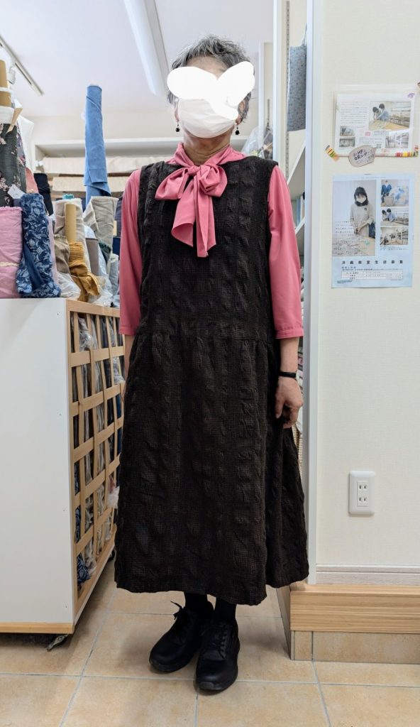ジャンバースカートにワンピースに 洋裁教室どちらも良くお似合いです X Facebook はてブ Pocket LINE コピー 2025.04.29 ジャンバースカートとワンピースもお作りのお客様です。まずはジャンバースカート。ポコポコウール生地。ふんわり生地とかわいい形が、お客様にぴったりの1枚となりました。ワンピースは張りのあるローン生地をお選びです。ギャザー袖とイタリアの丸いボタンが、さらに、おしゃれ度を上げました。