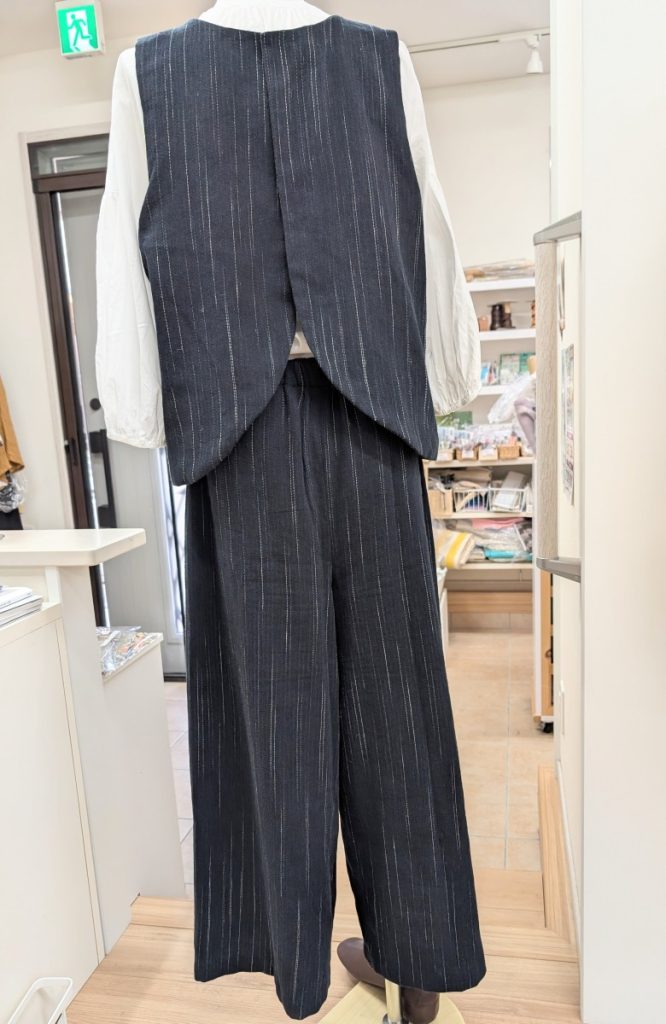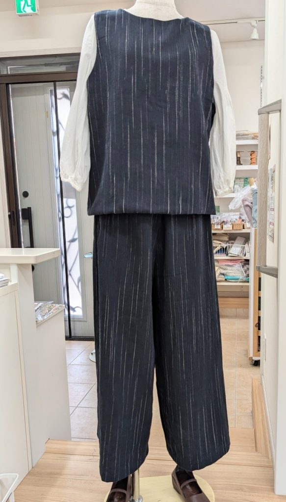 同じ作家さんの播州織で 洋裁教室ベストとパンツ X Facebook はてブ Pocket LINE コピー 2025.10.20 かすりの播州織でベストとパンツのをお作りのお客様です。ベストは前後どちらでも着用でき、何パターンにも着こなすことができる、可愛いセットアップになりました。