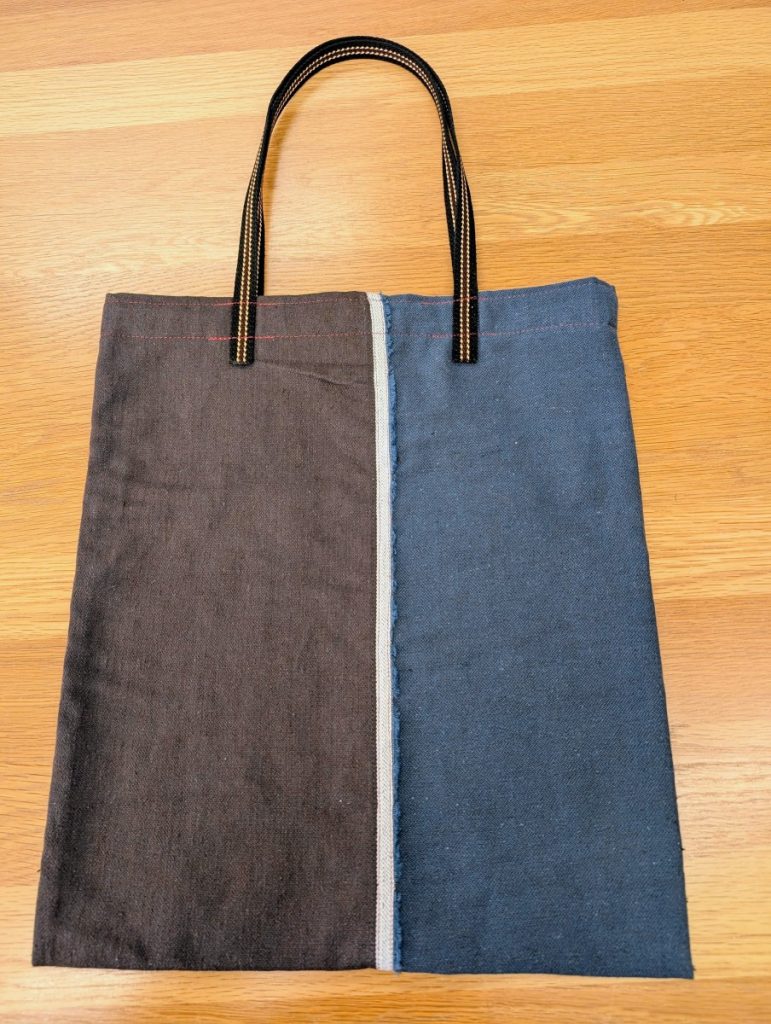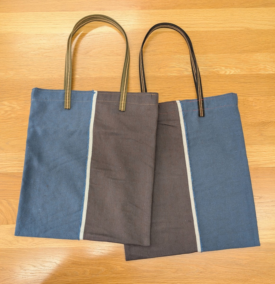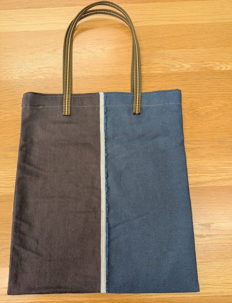 残り布とは思えないバッグ 洋裁教室違いを探してください X Facebook はてブ Pocket LINE コピー 2026.01.25 茶と紺の両面使いの生地で洋服作り。残り布でバッグを2つお作りです。お姉さま用とご自身用です。ポイントは白の耳を活かしたところ。そして、遊び心もあり、知的な雰囲気の、プレッピーテープを持ち手に選ばれたことです。テープはよ~く見ると色違いです。細長い布しか残っていませんでしたが、洗練されたバッグが2つもできました。