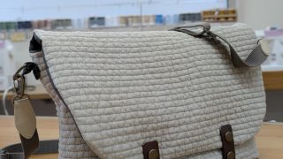 洋裁教室 ボディバッグとして 斜め掛けバッグ、それも、身体の前側で荷物が出し入れできるような…。ボディバッグをお作りのお客様です。ヌビ生地にパリッとした綿麻生地、そして革をあしらわれたバッグが完成しました。 2026.02.24 洋裁教室