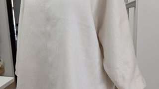 洋裁教室 起毛リネン生地で春服 中肉の起毛リネン生地。光沢のある裏側を表に、起毛は裏に潜ませました。見た目は春らしいプルオーバーをお作りのお客様です。お花見のシーズンも大活躍! 2026.02.24 洋裁教室