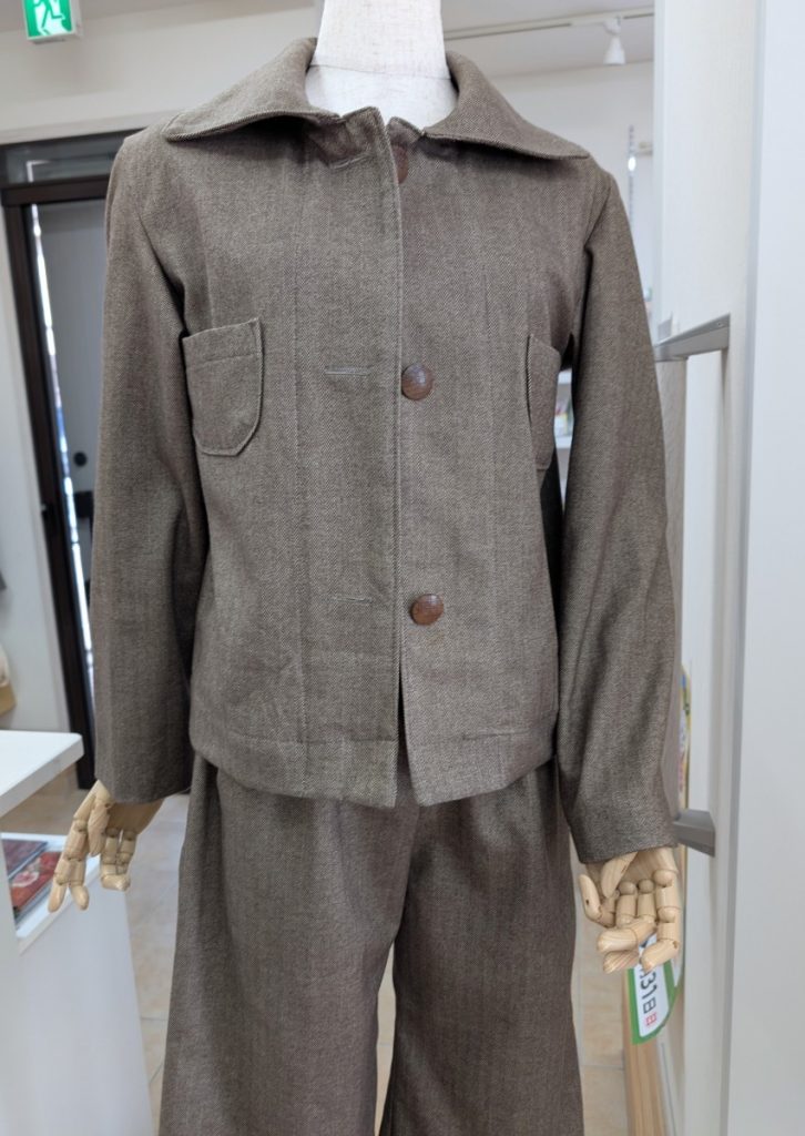 かっこいいジャケットとパンツ 未分類セットアップです X Facebook はてブ Pocket LINE コピー 2026.03.23 可能なら上下あったほうがいいな~と、ジャケットだけでなく、パンツもお作りのお客様です。襟のラインと全体のシルエットがぴったりの、かっこいいセットアップになりました。